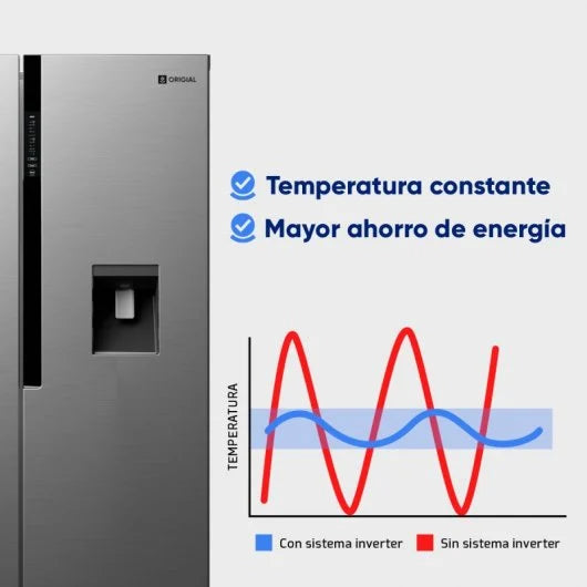 - Ahorra en tu factura. Gracias a su tecnología inverter disfrutarás de una tecnología sostenible, capaz de trabajar a mayor rendimiento con un menor consumo. ¿Por qué no elegir colaborar con el medio ambiente y ahorrar en tus facturas? Ayudar al planeta y a tu economía ahora es posible. Además de motor inverter, este frigorífico dispone de clasificación energética E, que te ayudará a mantener la economía familiar en equilibrio.