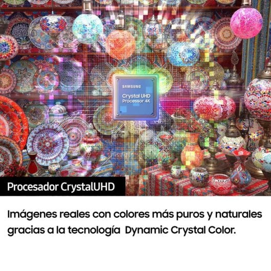 El Samsung TU50CU7095UXXC es un televisor LED de 50 pulgadas con resolución 4K UHD y diversas funciones inteligentes proporcionadas por el sistema operativo Tizen. Este modelo ofrece una excelente calidad de imagen y sonido gracias a tecnologías como PurColor, HDR10+, Adaptive Sound y Q-Symphony. Además, cuenta con múltiples opciones de conectividad y accesibilidad, siendo una opción versátil y completa para el entretenimiento en el hogar.